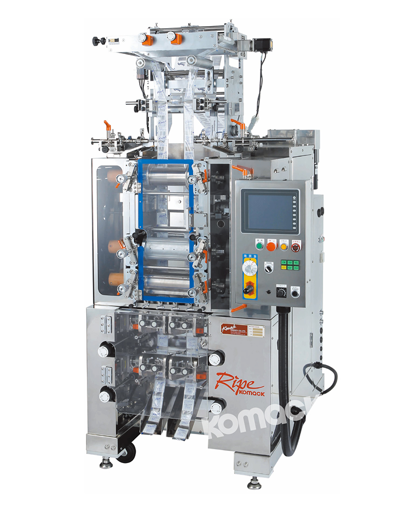 本機是重視應用性?操作性?保養性的小巧精致型液體?粘體自動充填包裝機。本機通過全軸伺服控制,可將制袋相關的內容如制袋尺寸?封口溫度?充填量?各種驅動的時機等進行文檔管理,可記憶100種以上的產品數據。觸摸屏中「管理項目」「記憶項目」「初期設定值」等用途分別用顏色區分,操作性出色,原反周邊整潔利索!本機無任何多余的控制類裝置。本機標準配備薄膜糾偏裝置,使各種薄膜都能穩定通過機器各部位;采用透明防護罩,可從外部目視確認驅動部狀態;另外,不管是從機器正面還是背部,都易進行熱輥筒的保養工作。更為方便的是,只要取下切割裝置的4處固定部,就可將切割裝置整體卸下,分解檢修非常簡單。