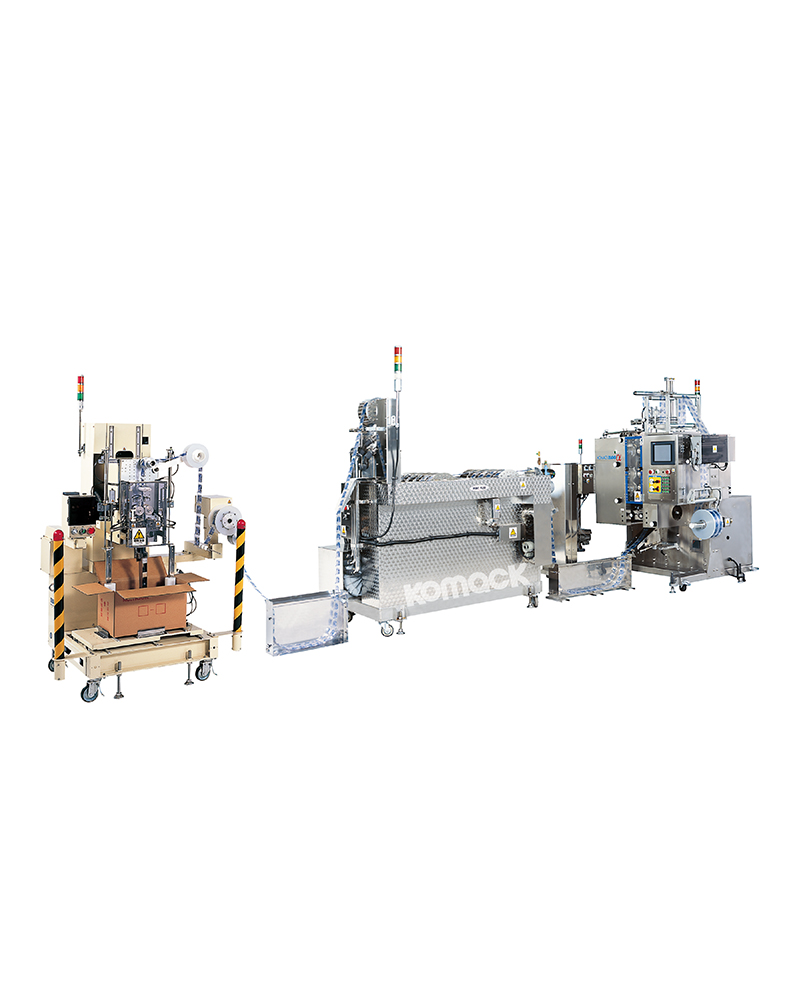 本系統(tǒng)采用連續(xù)帶狀形式的生產(chǎn)線,將熱充填后的產(chǎn)品進(jìn)行保溫·冷卻·除水。與以往將保溫冷卻除水作業(yè)分開分別進(jìn)行的生產(chǎn)線相比,連續(xù)帶狀形式具有「因采用邊輕揉產(chǎn)品邊進(jìn)行保溫·冷卻,所以充填物可均勻熱交換」「因采用低溫殺菌,所以可保持產(chǎn)品的色·香·味」等優(yōu)點(diǎn)。再加上是連續(xù)進(jìn)行保溫·冷卻·除水作業(yè),因此用極少的人力就可完成。最后,配備產(chǎn)品折入裝箱裝置,單包切割后進(jìn)行裝袋收集等工程,以低勞動(dòng)力即可獲得高效率。根據(jù)您的需求,請(qǐng)選擇包裝線的配套裝置。